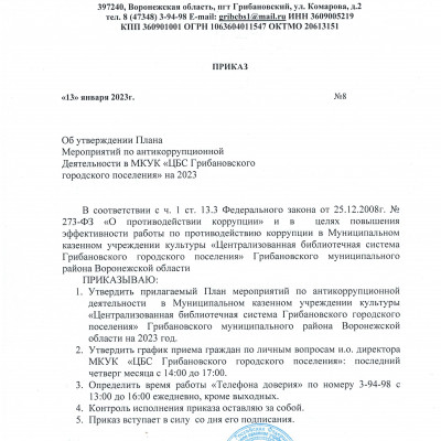 • Муниципальное казенное учреждение культуры "Централизованная библиотечная система Грибановского городского поселения"