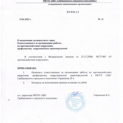 • Постановление учредителя о назначении руководителя организации культуры