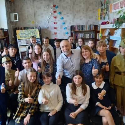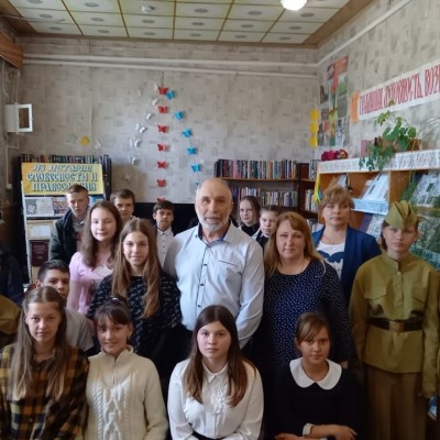 Замечательным подарков всем присутствующим, стала встреча с художественным руководителем самого знаменитого Грибановского народного ансамбля "Сельские зори", заслуженного работника культуры Российской Федерации Алексеем Николаевичем Ванюковым. Алексей Николаевич рассказал о своем коллективе, их деятельности, спел несколько песен, которые сам написал. В завершении мероприятия все присутствующие вместе спели песню "Катюша".