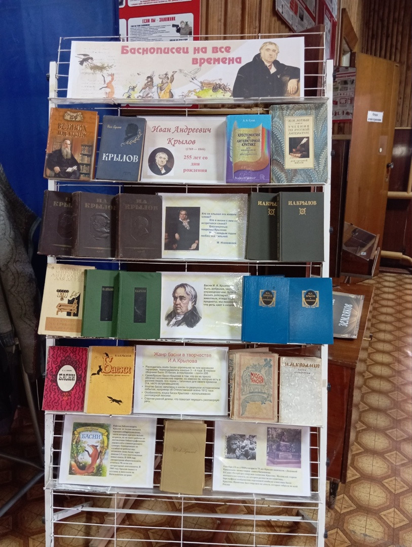 6 февраля в Центральной библиотеке начала работу книжная экспозиция «Баснописец на все времена», посвященная жизни и творчеству писателя. На выставке представлены произведения великого баснописца, которые стали народным достоянием, а так же биографические сведения.