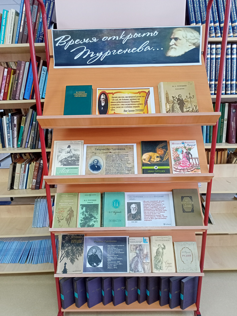 К юбилею писателя в Структурном подразделении МКУК «ЦБС Грибановского городского поселения» Лесозаводской библиотеке подготовлена книжная выставка «Время открывать Тургенева». В представленных изданиях посетители найдут не только информацию о жизни и творчестве Ивана Сергеевича, но и интересные факты из его биографии, и самые известные его произведения разных лет.