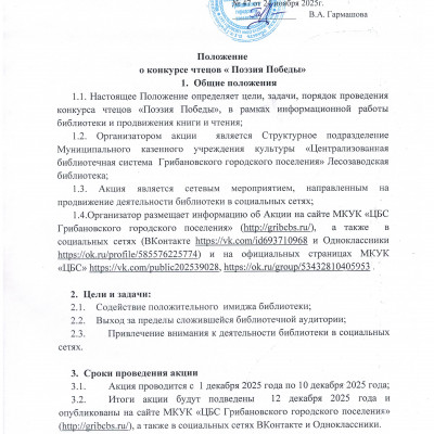 Итоги акции будут подведены 12 декабря 2025 года и опубликованы на сайте МКУК «ЦБС Грибановского городского поселения» (gribcbs.ru/), размещены на страницах Лесозаводской библиотеки в социальных сетях («ВКонтакте» vk.com/id693710968) и Одноклассники (ok.ru/profile/58...).
