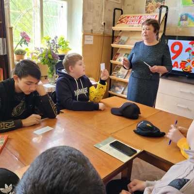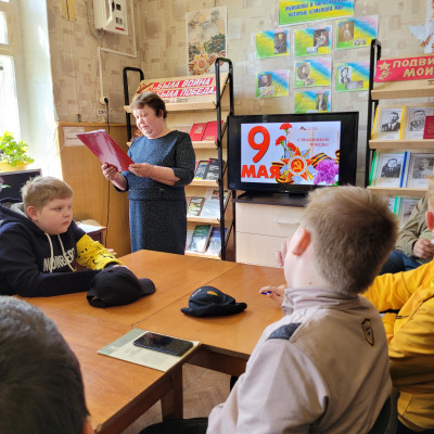 5 мая в Центральной библиотеке прошел урок памяти "Дорогами нашей Победы". В ходе мероприятия библиотекарь поздравил учащихся с предстоящим праздником - Днем Победы, а так же рассказала о том, какой ценой она была завоевана, о том, что война - бесстрашие защитников Бреста, это 900 дней блокадного Ленинграда, это клятва Панфиловцев: "Ни шагу назад, за нами Москва!", это добытая огнем и кровью победа под Сталинградом, это подвиг героев Курской дуги, это штурм Берлина, это память сердца народа, о том, что День Победы был и остается священным днем для всех людей нашей страны.